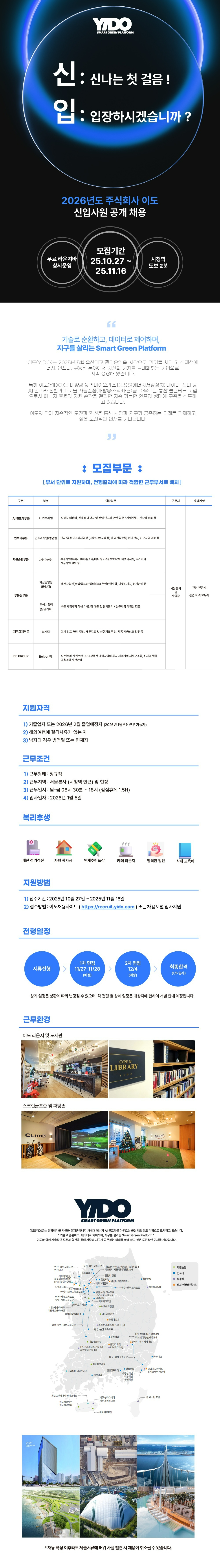 (주)YIDO 2026년도 신입사원 공개채용 (전 분야)