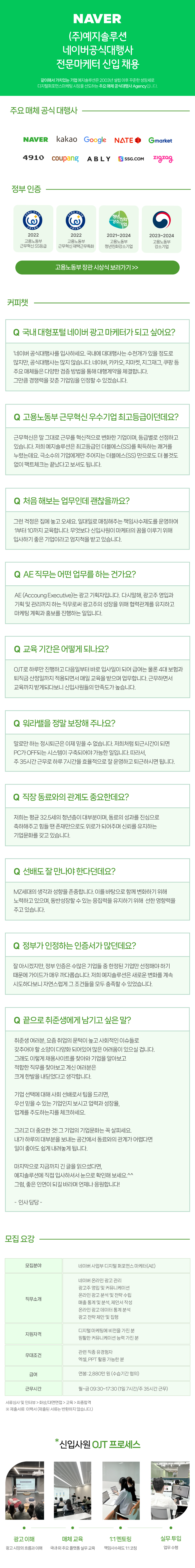 청년친화강소기업/월240만/주35시간/칼퇴근/카카오광고마케터