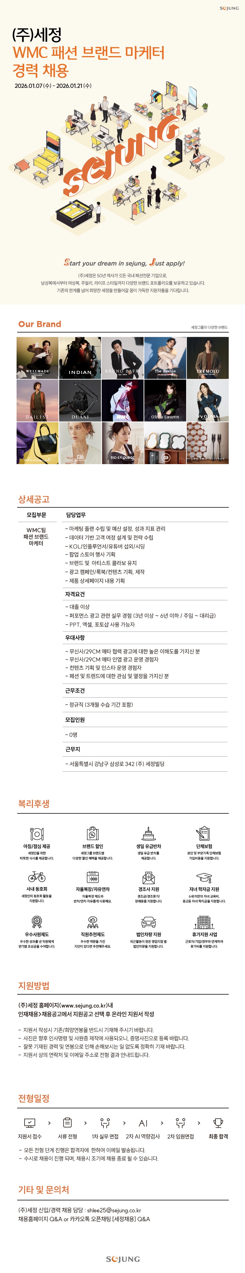 [세정] WMC팀 패션 브랜드 마케터 경력 채용