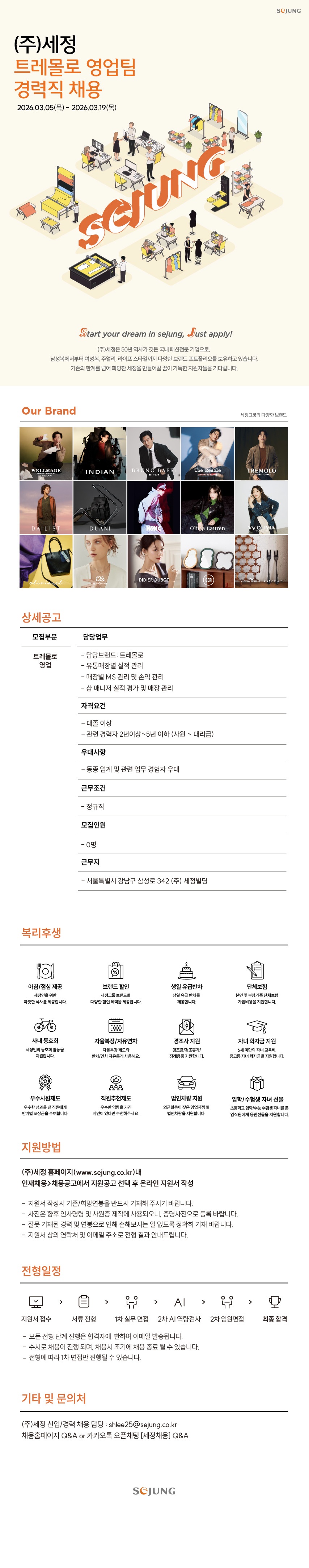 [세정]트레몰로 영업팀 경력직 채용