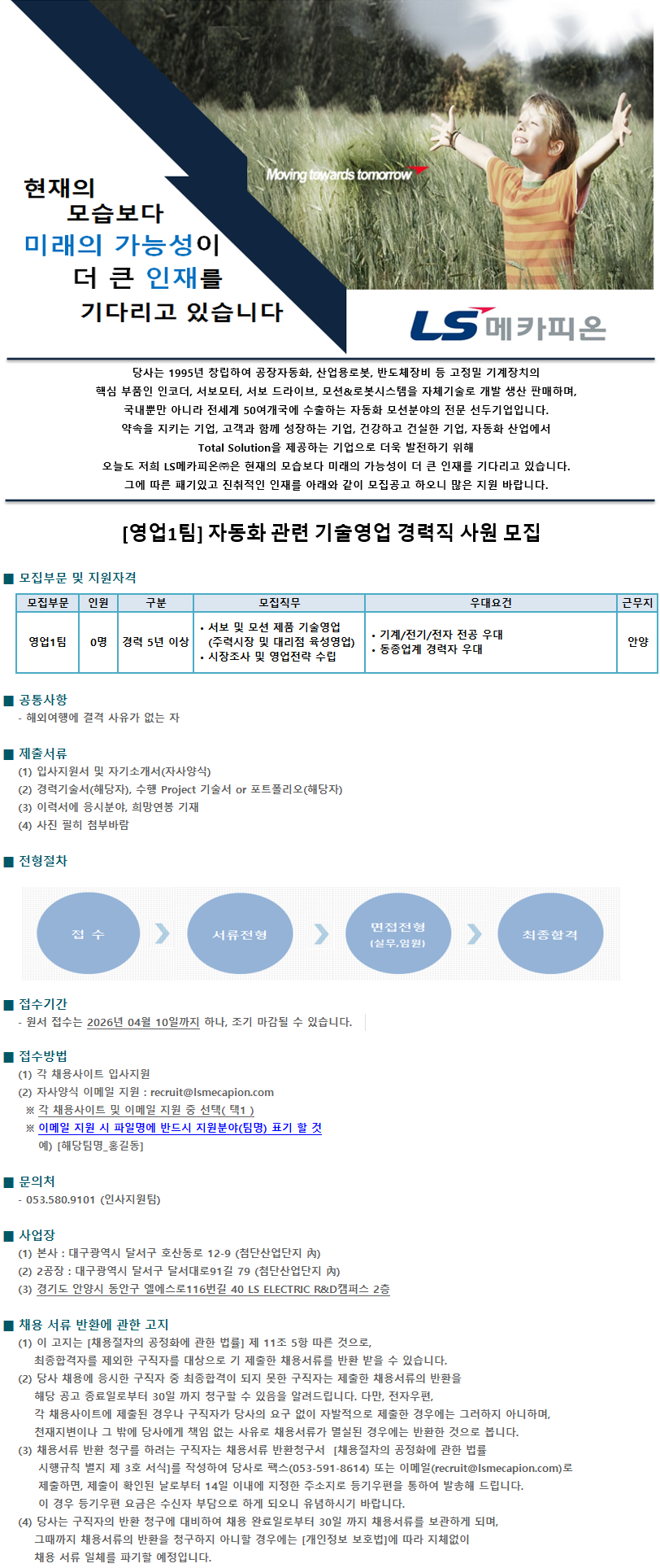 [영업1팀] 자동화 관련 기술영업 경력직 사원 모집