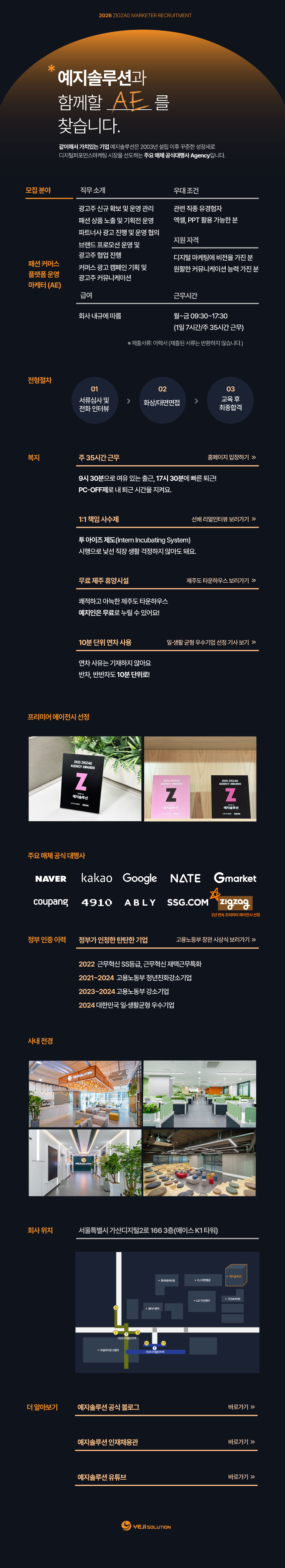 MZ선호기업/하루7시간근무/지그재그 전문 마케터 신입