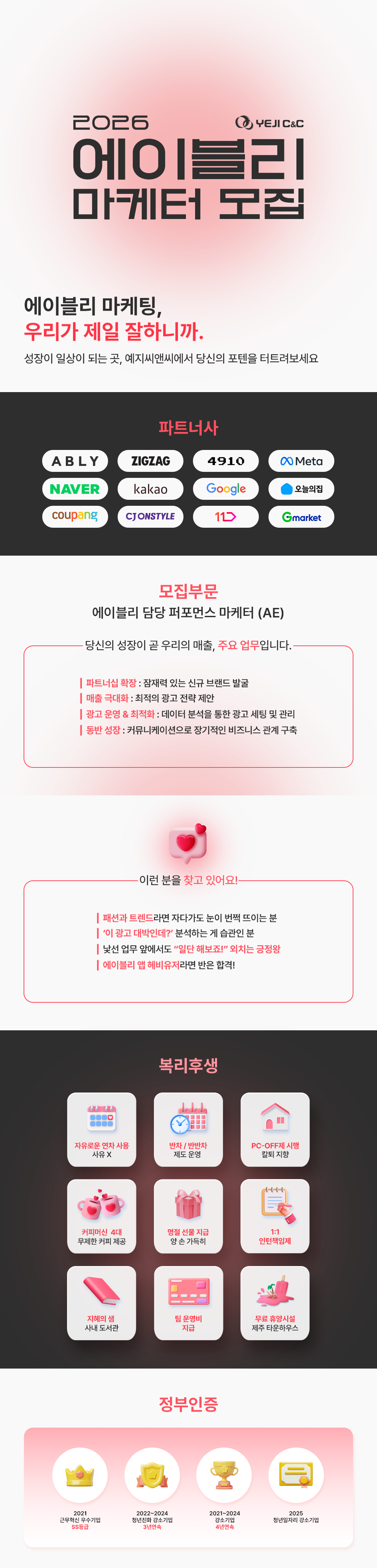 주35시간 / 온라인광고 에이블리 마케터 신입 채용